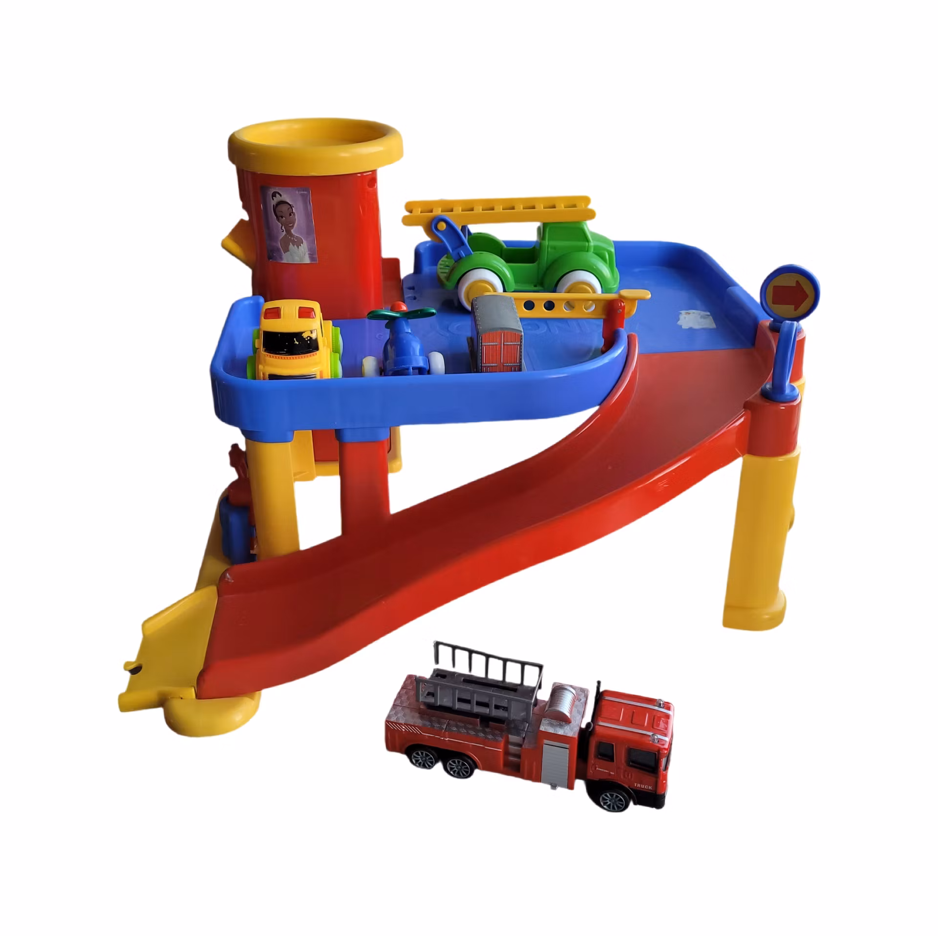 Parkeringshus, skick B 89 kr Lägg i korgen Information Bilar enligt bild, tror att helikoptern hör till men ej övrigaCa 25 cm högt